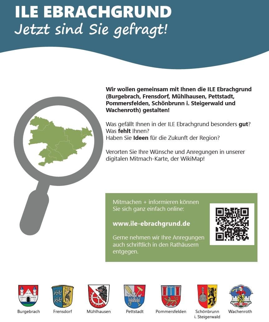 Überlegen Sie, welche Projekte 2025 bei Ihnen geplant sind, und kommen Sie mit Ihrem Vorschlag auf uns zu! Nähere Informationen zur Förderung und Antragstellung finden Sie auf der Homepage der ILE Ebrachgrund (www.ile-ebrachgrund.de) unter „Regionalbudget 2025“. Weitere Informationen finden Sie auch auf der Homepage des Bayerischen Staatsministeriums für Ernährung, Landwirtschaft, Forsten und Tourismus.
